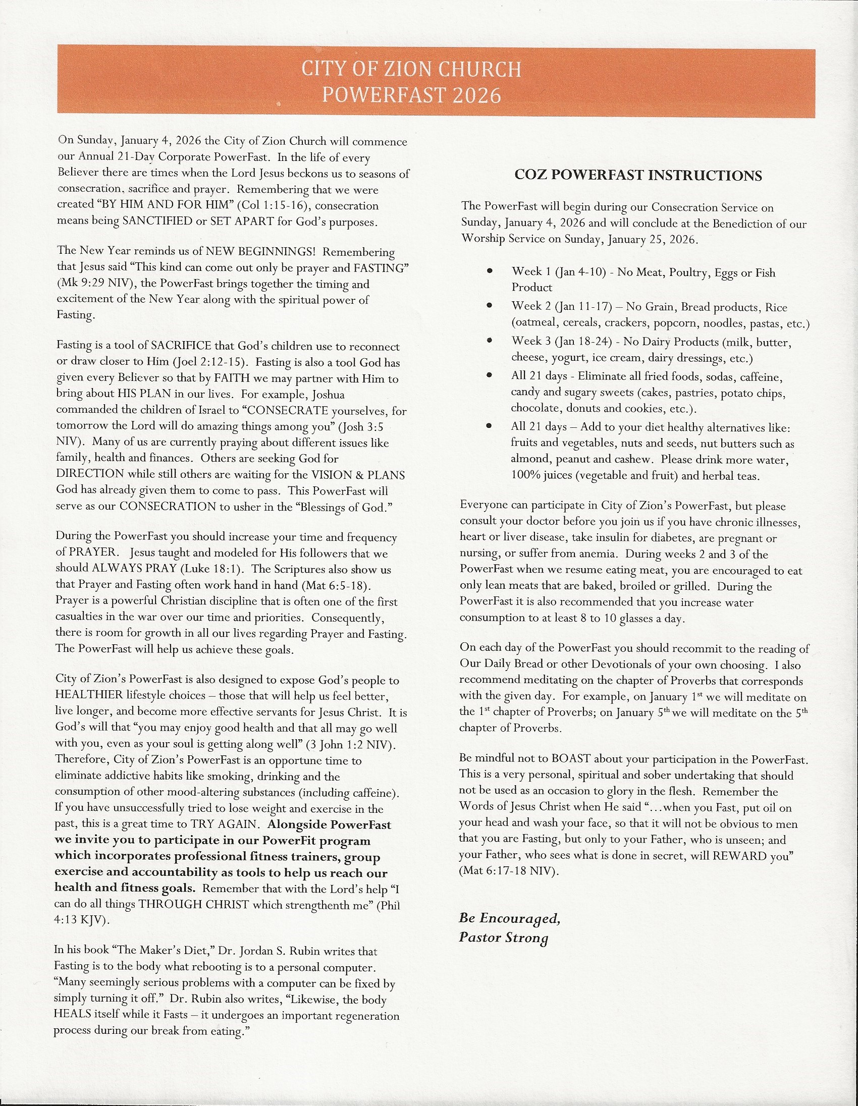 Zion’s Call is City of Zion’s news publication designed to inform and inspire its readers. Our newsletter includes informative articles, powerful testimonies, and a schedule of events.